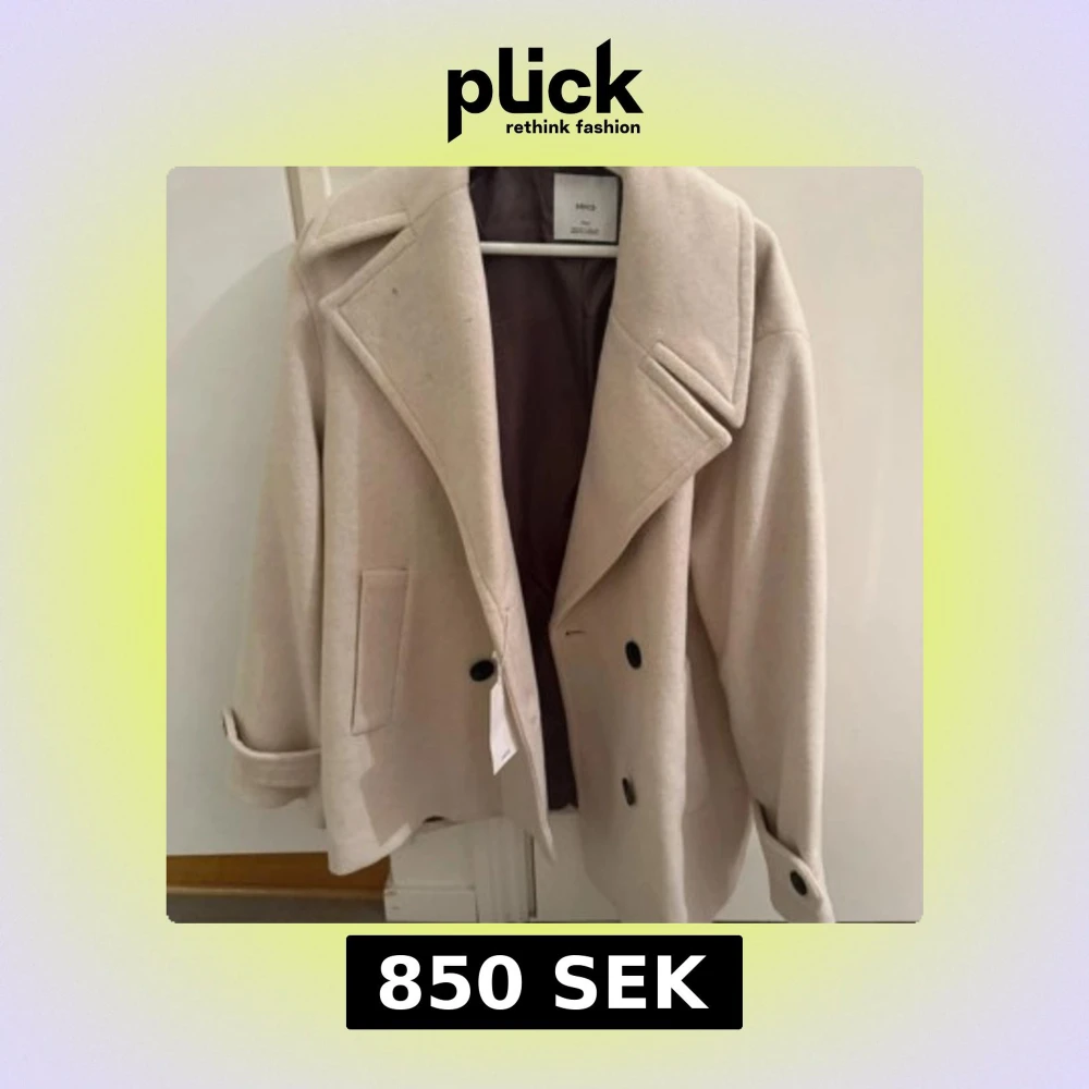 Snygg skepparkavaj från MNG i beige ull med klassisk dubbelknäppning och breda slag. Jackan har svarta knappar, fickor fram och en stilren, loose passform. Perfekt för dig som gillar minimalistisk och clean stil.