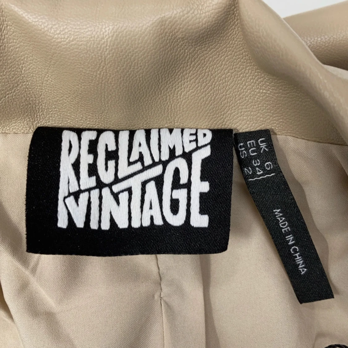 Snygg beige kavaj frÄn Reclaimed Vintage. Jackan har omlottknÀppning med en knapp i sidan. Mycket bra skick.