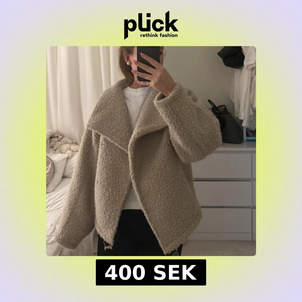 Mysig beige teddyjacka med oversized passform. Jackan har långa ärmar och en stilren design utan synliga detaljer som dragkedjor eller knappar. Storlek xxs men sitter som en xs/s