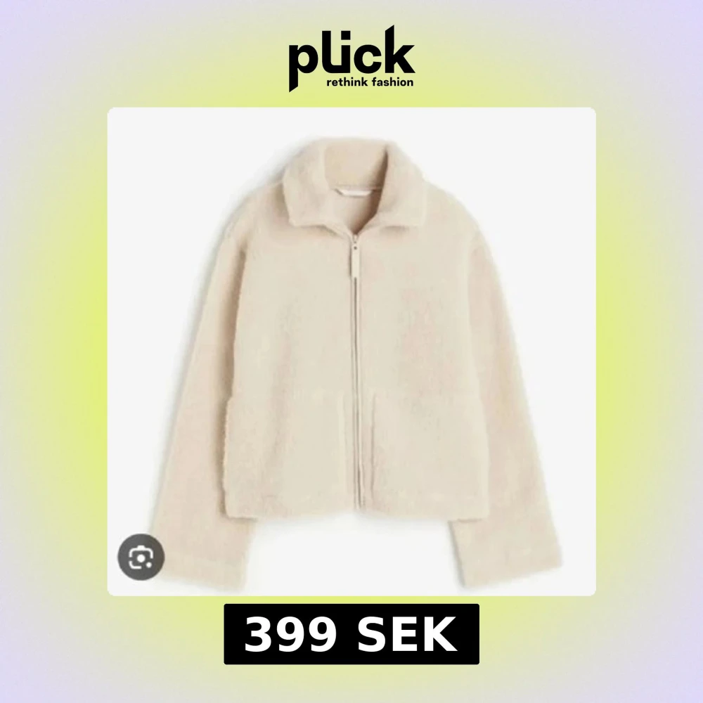 beige teddyjacka med dragkedja framtill. Perfekt långa ärmar. Storlek stor ej på jackan men passar mig som har storlek S med en lite oversized stil