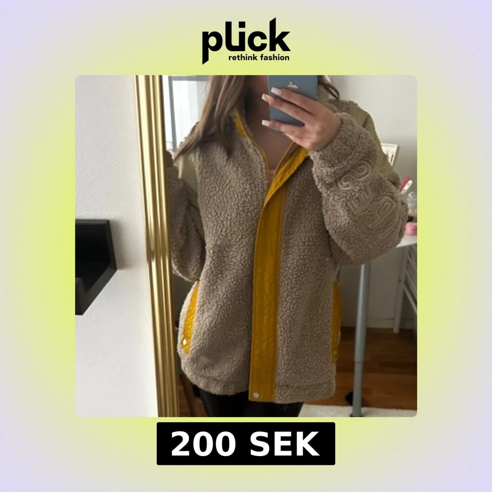 Säljer en oversized teddyjacka i beige med coola gula detaljer och dragkedja framtill. Jackan är köpt från adidas och sällan använd❤️❤️❤️