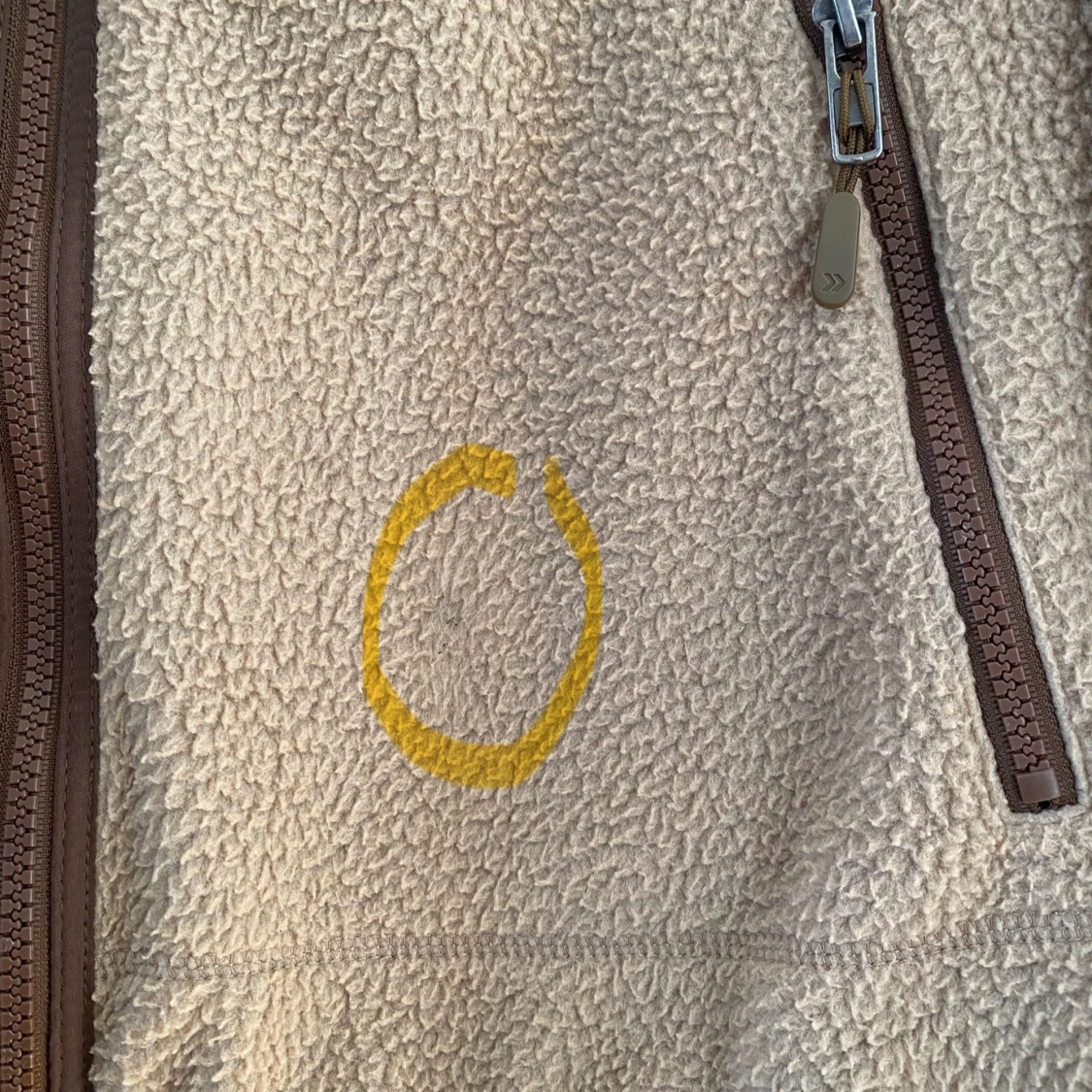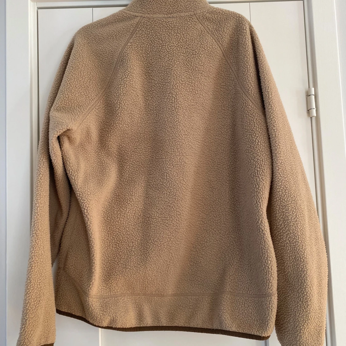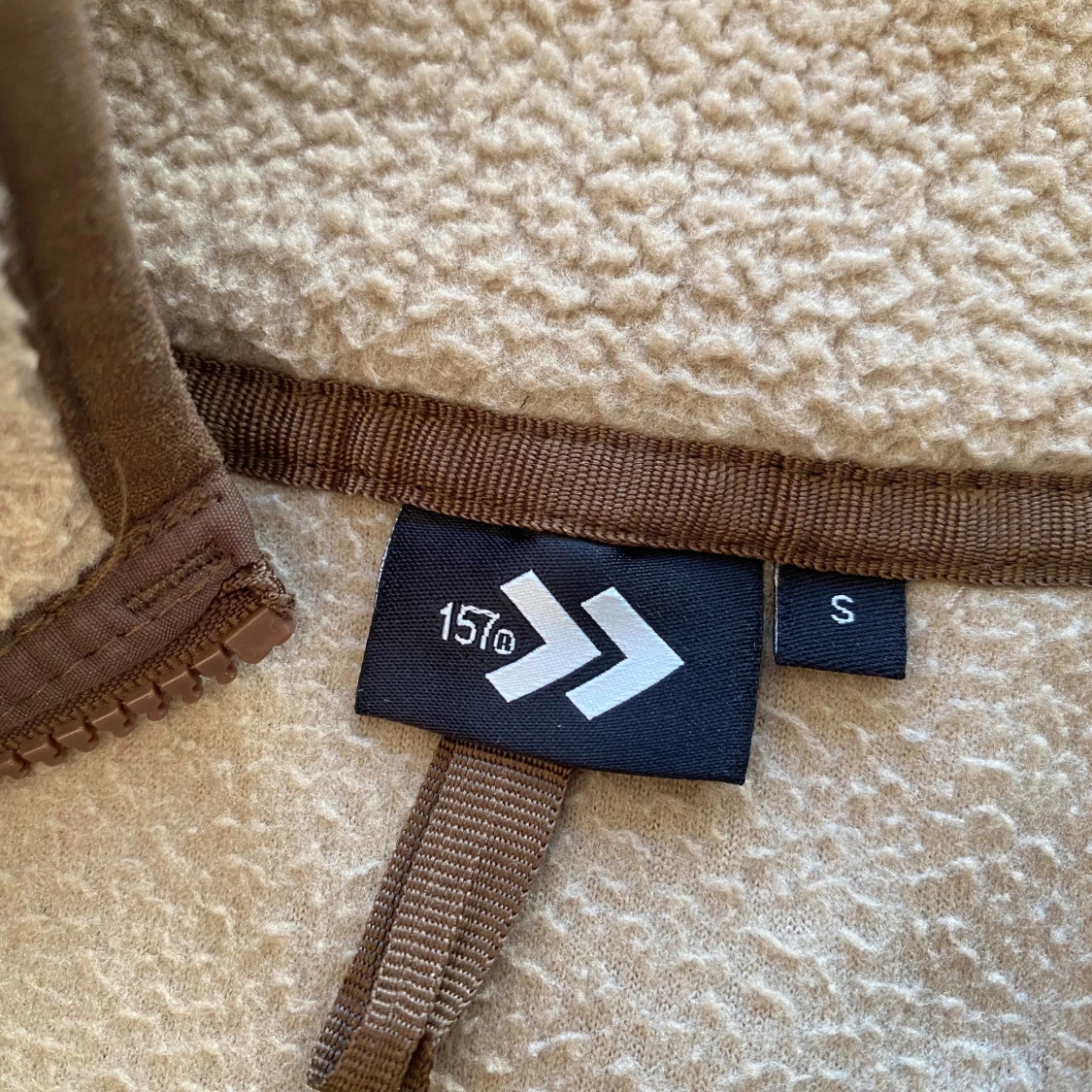 Mysig beige teddyjacka från 157 i storlek S. Jackan har bruna detaljer vid dragkedjorna, hög krage och tre fickor med dragkedja framtill. Tillverkad i fluffigt fleece-material som håller dig varm under kyliga dagar. Jackan har en liten fläck vid ena fickan i övrigt i bra begagnat skick. Mått Över bröstet: ca 59 cm Längd från axeln och ner: ca 66 cm 100% polyester Kommer från ett djur och rökfritt hem.