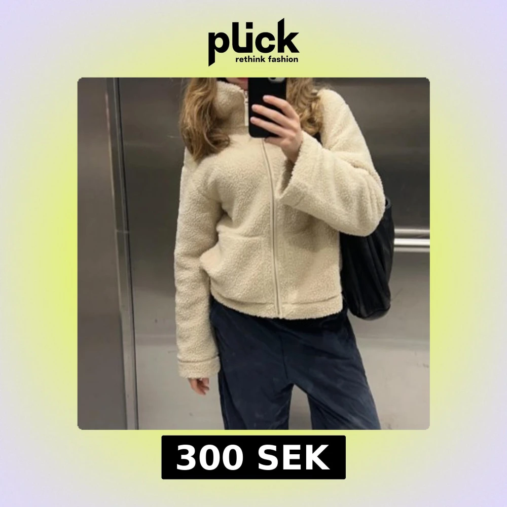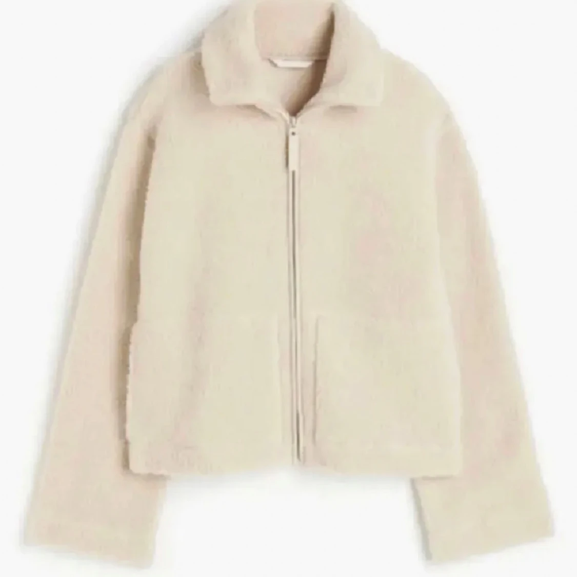 Mysig beige teddyjacka med dragkedja framtill och långa ärmar. Perfekt för kyligare dagar med sin fluffiga och varma design. Jackan har en enkel och stilren look som passar till många olika outfits.