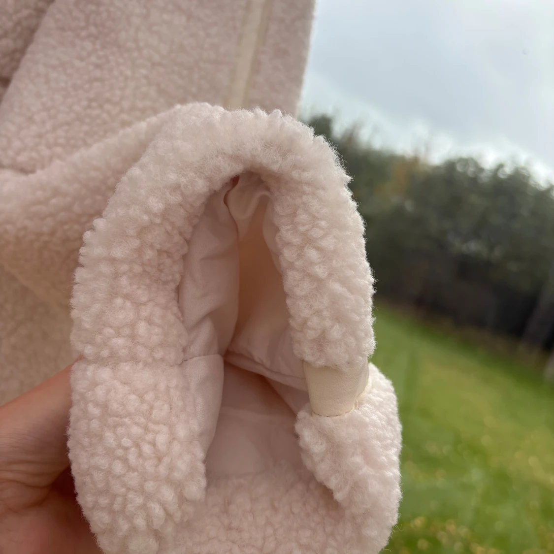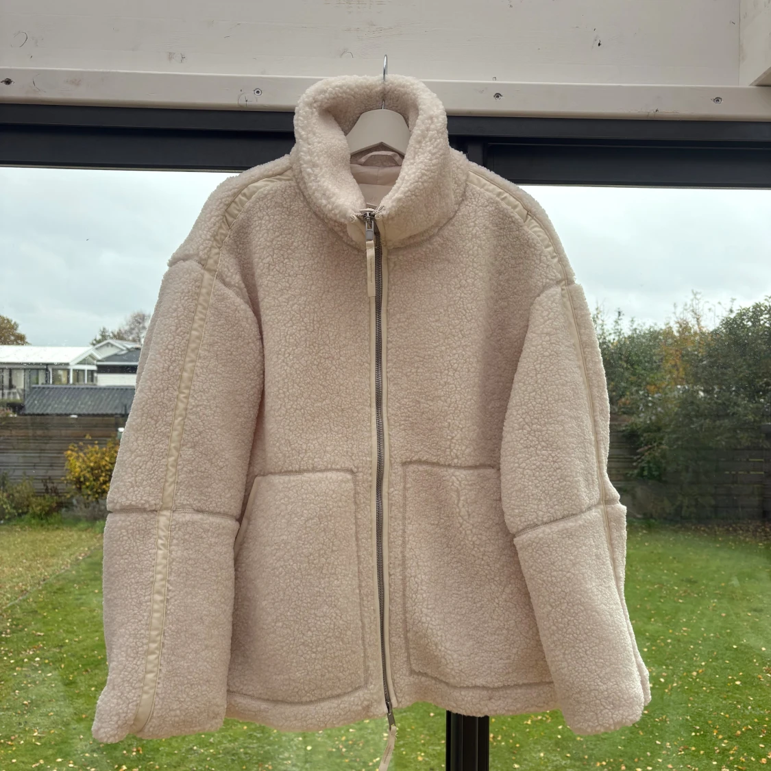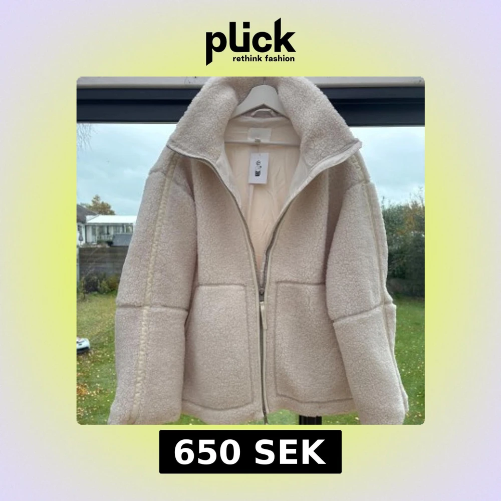 Supermjuk och oversized teddyjacka i beige med hög krage och stora fickor framtill. Säljer denna då den aldrig kom till användning i vintras. Prislapp finns kvar. Jackan kommer från HM💕
