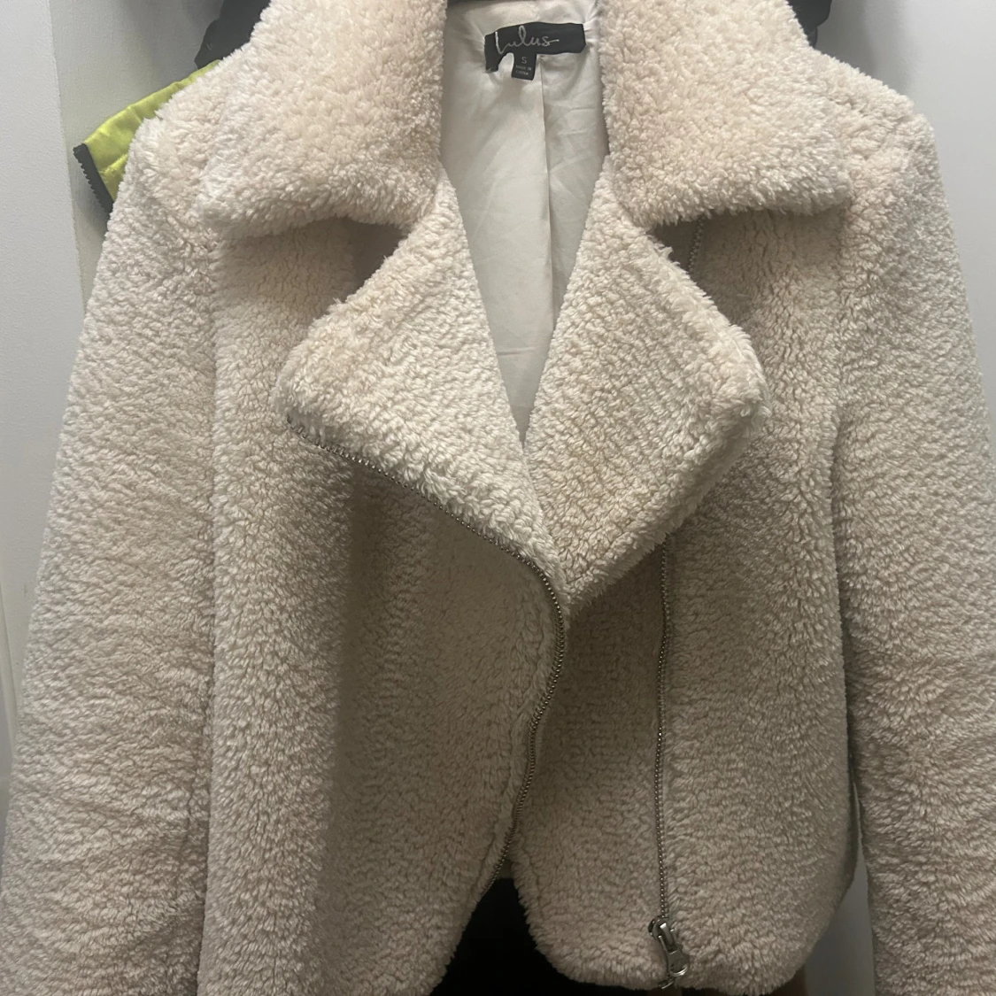 Säljer en fluffig och mysig teddyjacka från Lulus i beige färg.