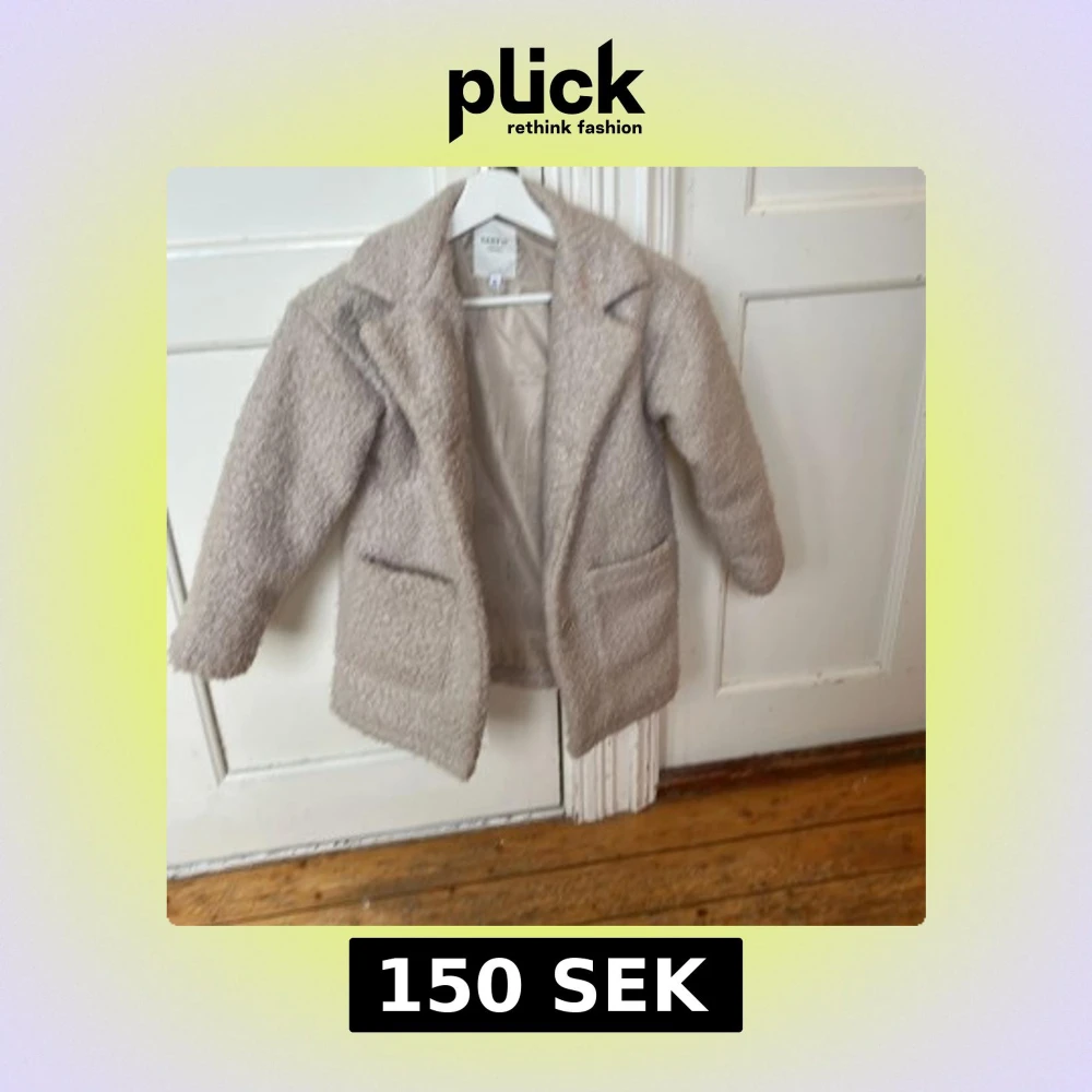 Mysig beige teddyjacka från Name It i storlek 128. Jackan har klassisk krage, två fickor framtill och är helfodrad. Perfekt för dig som vill ha en varm och trendig look med lite oversized känsla.