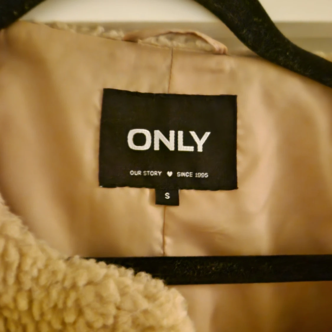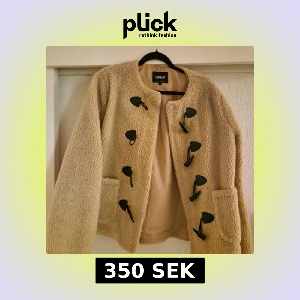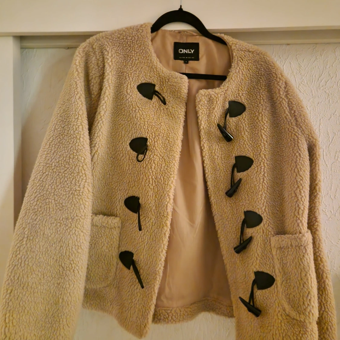 Supermjuk och fluffig beige teddyjacka från ONLY med snygga svarta knäppningar framtill och två stora fickor. Jackan har rund halsringning och är helfodrad för extra komfort. Perfekt för dig som vill ha en mysig och trendig look.