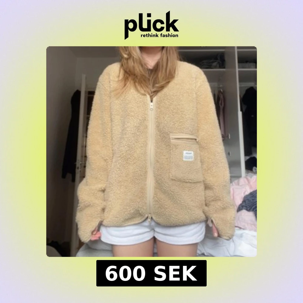 Mysig beige teddyjacka från Resteröds med dragkedja framtill och en stor ficka med dragkedja på bröstet. Jackan har en oversized passform och är perfekt för kyligare dagar. Fleece-liknande material som känns mjukt och fluffigt.