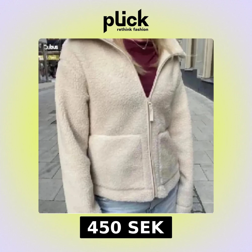 Mysig beige teddyjacka med dragkedja framtill. Jackan har en hög krage och långa ärmar, perfekt för kyligare dagar. Den har en avslappnad passform och är gjord i ett mjukt material som ger en skön känsla.