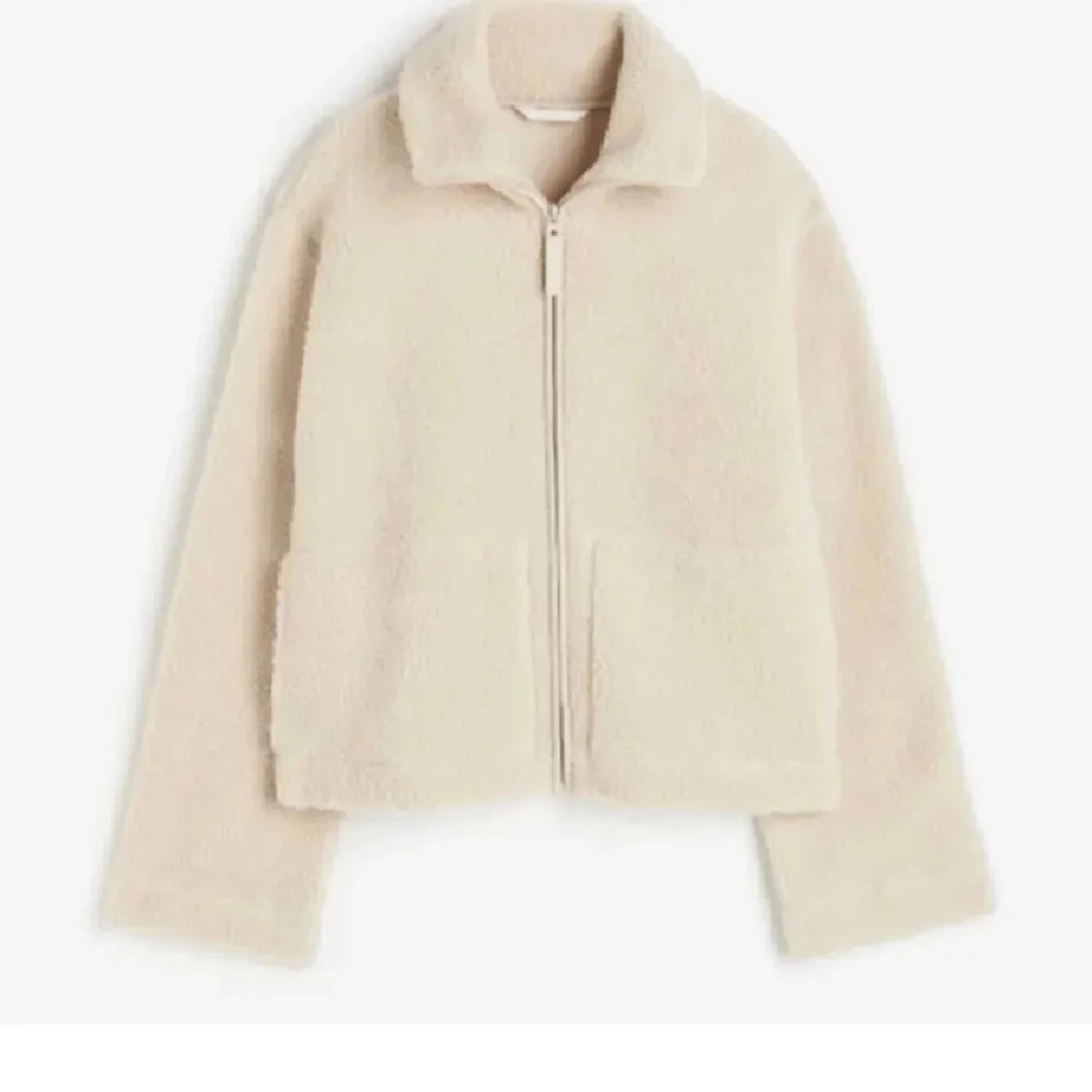Mysig beige teddyjacka med krage och hel dragkedja framtill. Jackan har två stora fickor och är långärmad med en loose passform. Perfekt för att hålla sig varm och samtidigt se chill ut.