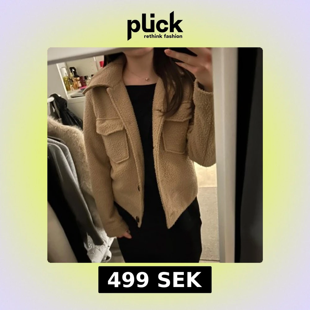 Mysig beige teddyjacka med knappar framtill och stora fickor på bröstet. Perfekt till våren!