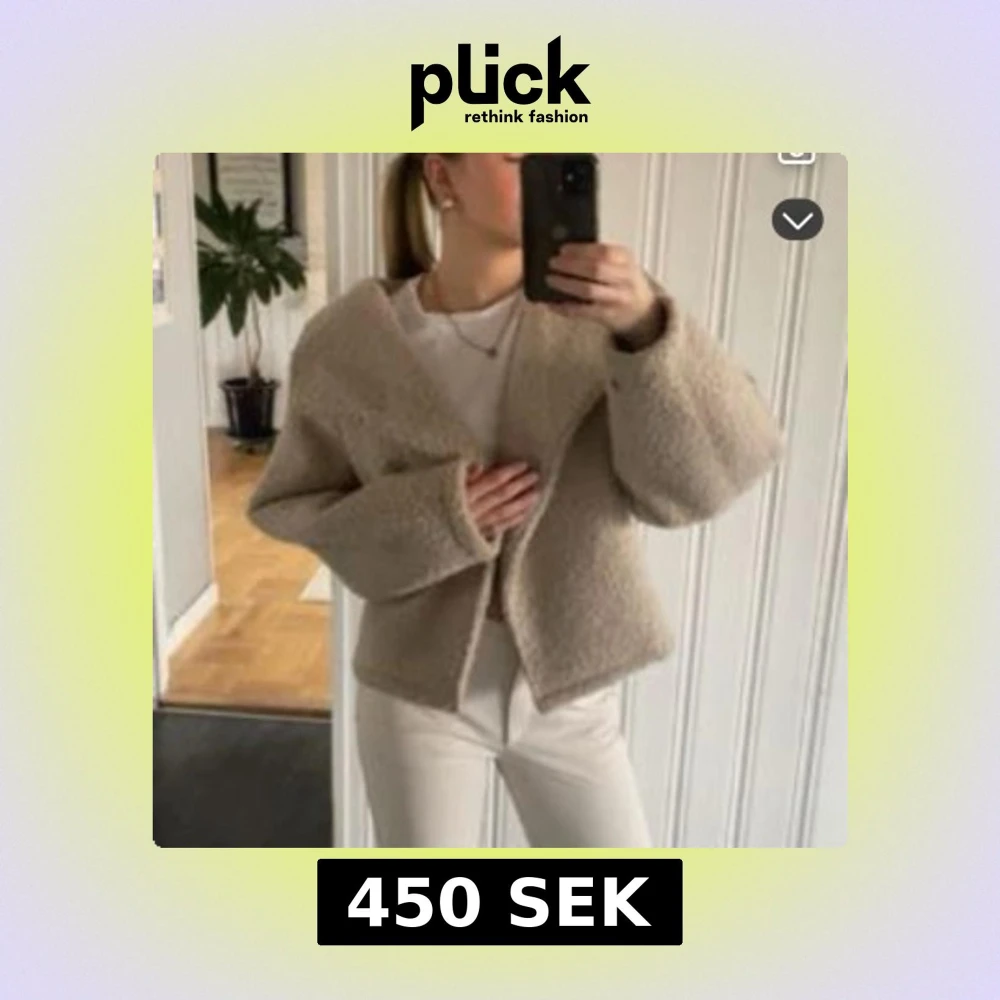 Supermjuk och fluffig beige teddyjacka med bred krage och oversized passform. Jackan är croppad och har långa ärmar, perfekt för att hålla sig varm och snygg under kyliga dagar.