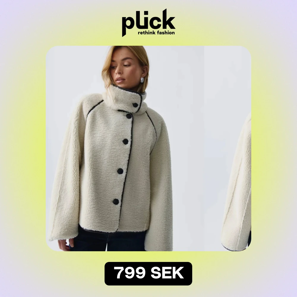 Säljer denna supermysig beige teddyjacka som även är reversible med svarta knappar och detaljer. Jackan har en hög krage och långa ärmar, perfekt för kyliga höst- och vinterdagar. Den är i mycket bra skick och har en loose passform som gör den extra bekväm. Perfekt för att hålla stilen och värmen samtidigt!
