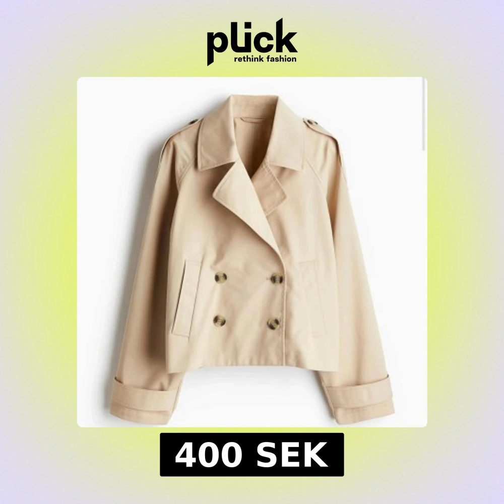 Snygg beige kappa med dubbelknäppning och klassisk krage. Jackan har en croppad design och axelklaffar för en stilren look.
