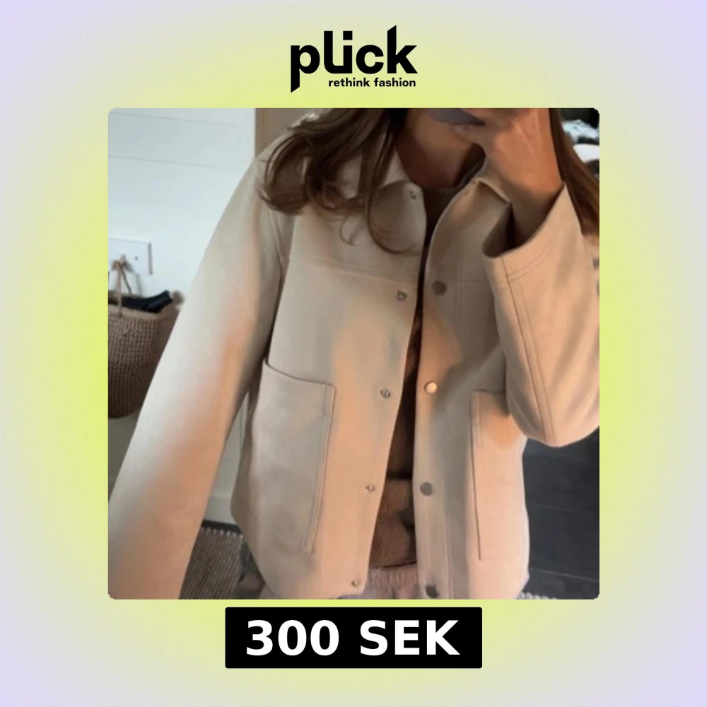 Snygg tunn beige jacka från Stradivarius med klassisk krage, stora fickor framtill och tryckknappar. Jackan har en rak passform och är gjord i ett mjukt material som känns lite mockaliknande. Perfekt att slänga över en hoodie eller t-shirt. Endast använd några enstaka gånger, inga tecken på användning.