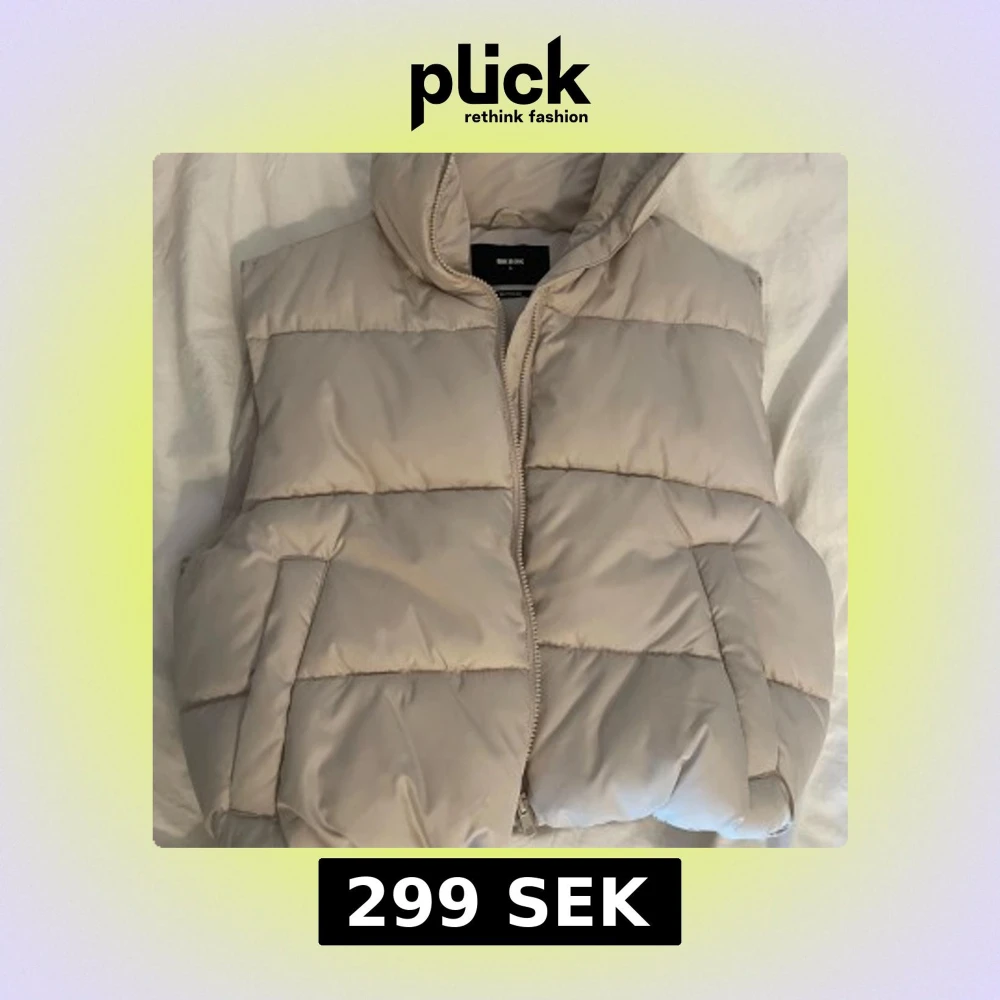 Snygg beige väst från Bik Bok med hög krage och dragkedja framtill + fickor. Perfekt att slänga över en hoodie nu när det börjar bli lite kallare ute. Endast använd en gång
