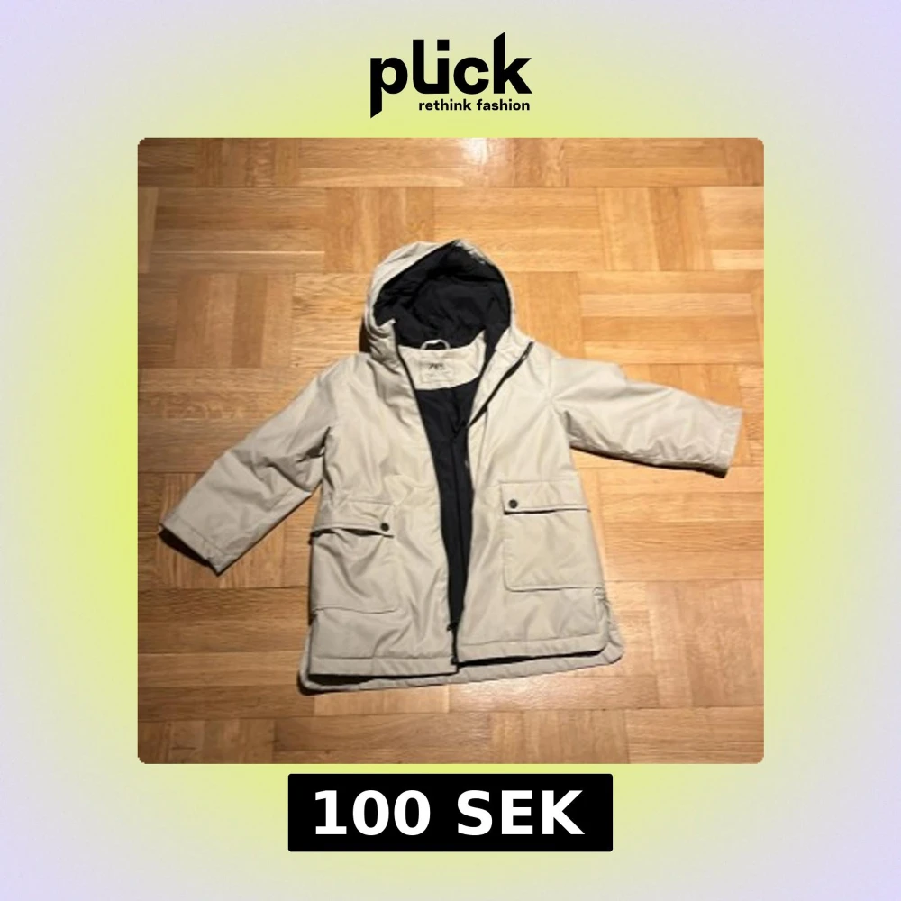 Stilren beige vindjacka från Zara med svart innerfoder och praktisk huva. Jackan har två stora fickor med lock och knappar framtill samt dragkedja. Perfekt för blåsiga dagar och enkel att matcha med olika outfits.