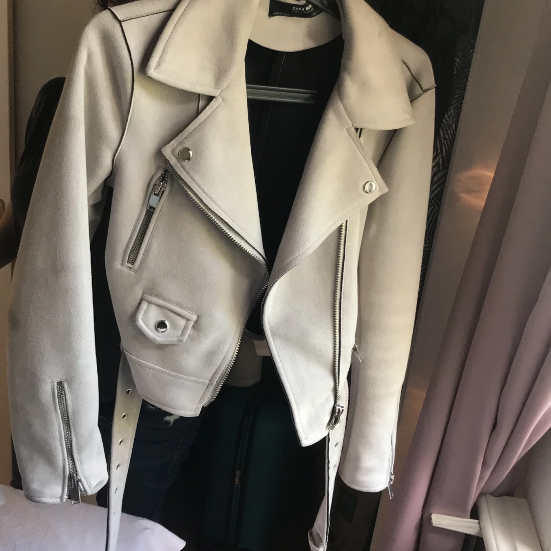Beige jacka från Zara i mockaimitation säljer p.g.a för liten storlek. Jätte fin för både höst och vår!