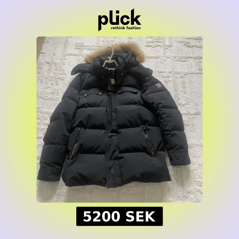 Säljer en svart vinterjacka från Belstaff med avtagbar huva som har fuskpäls. Jackan har dragkedja, tryckknappar och två bröstfickor samt två fickor med dragkedja. Klassisk pufferstil och varmfodrad. Orginal pris 10000kr/11000kr