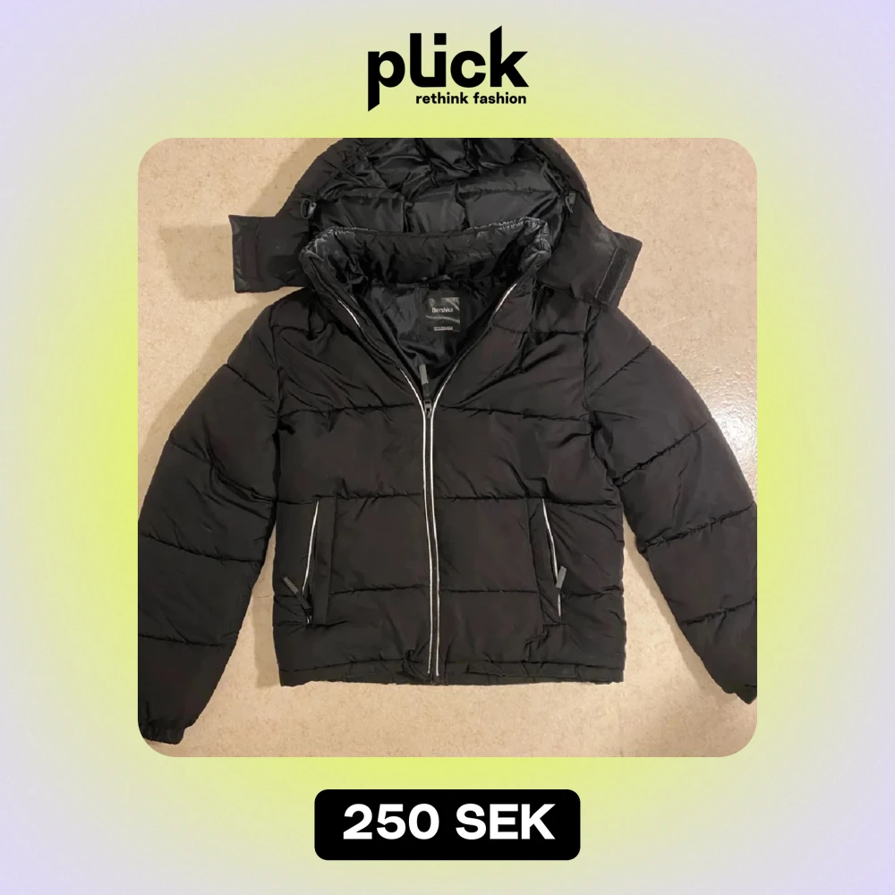 Säljer en svart pufferjacka från Bershka i storlek XS. Jackan har en dragkedja framtill och är perfekt för kalla dagar. Den är i mycket bra skick och har en stilren design med långa ärmar och en mysig huva. Perfekt för höst och vinter!