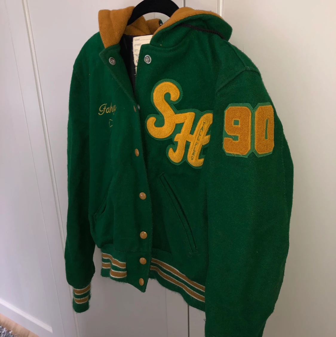 Vintage varsityjacket från USA på 80-talet, köpt på Beyond Retro för 1000, väldigt fin gammal äkta jacka från ett skollag, buda på, säljer endast för tillräckligt bra bud