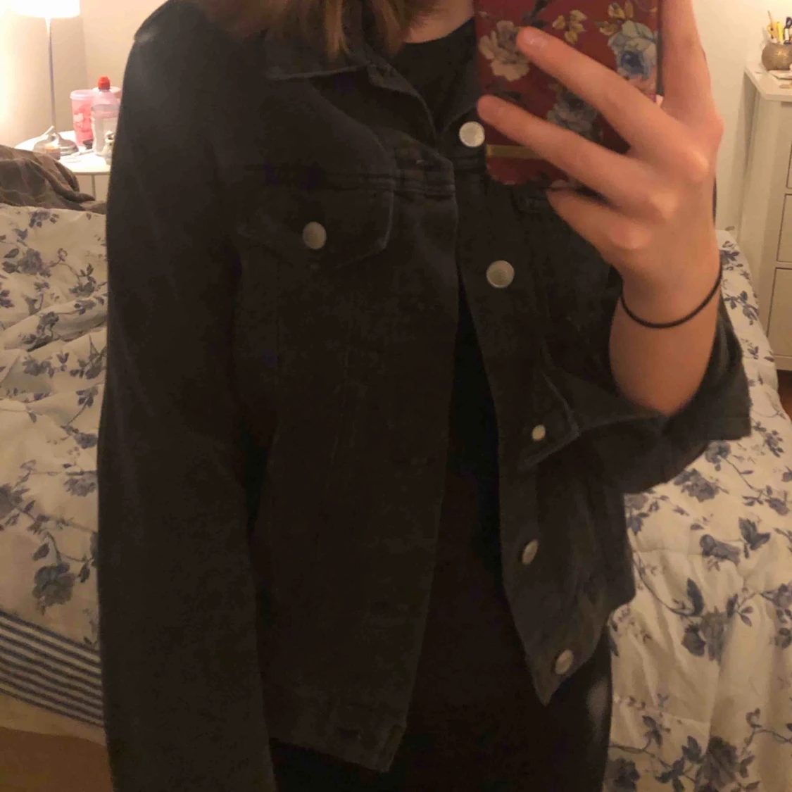 Svart jeansjacka!! Perfekt nu till våren😍 kommer inte till användning längre. Frakt är inte inkluderat i priset.