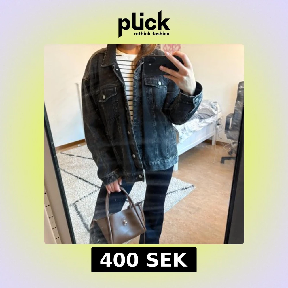 Säljer en svart oversized jeansjacka med klassisk krage och silverfärgade knappar. Jackan har två bröstfickor med lock och knapp samt raka sömmar. Perfekt för dig som gillar en chill och avslappnad stil.