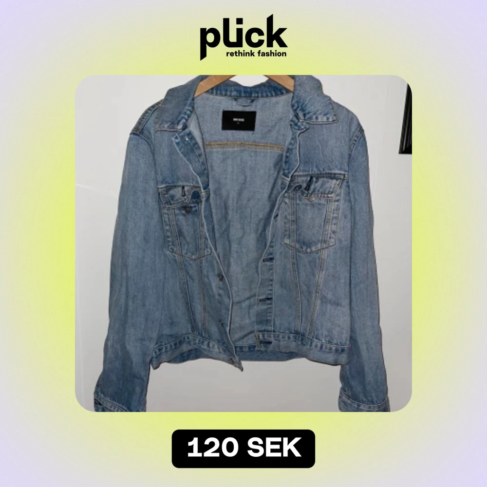 En ljusblå, croppad jeansjacka från BikBok som har varit väl omhändertagen