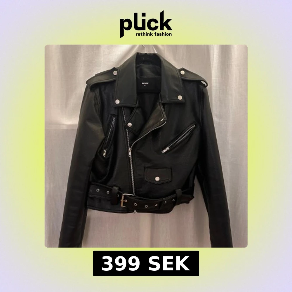 Snygg svart skinnjacka från BikBok med dragkedjor och bälte. Klassisk bikerstil med silverfärgade detaljer och axelklaffar. Perfekt för en edgy look. KÖPAREN STÅR FÖR FRAKT 📦