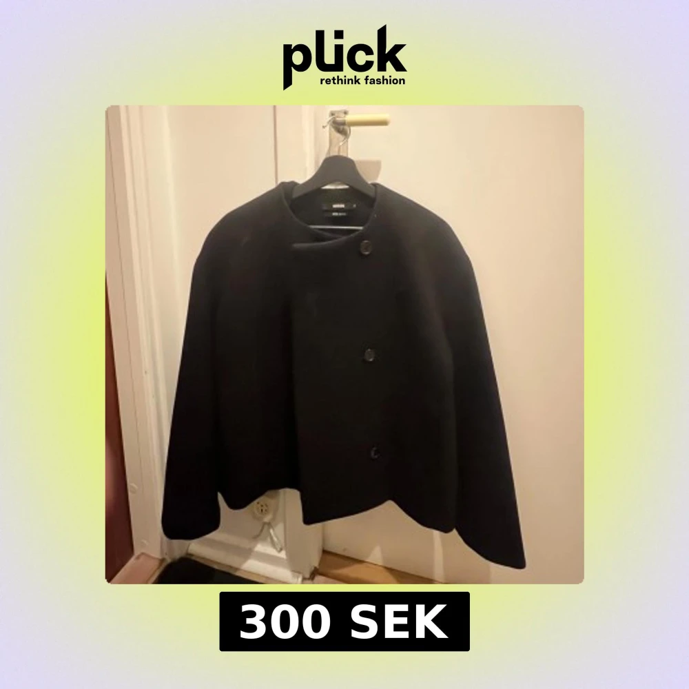 Stilren svart rock från Bik Bok med minimalistisk design och tre stora knappar framtill. Jackan har en rak, något boxig passform och är tillverkad i ett tjockare material som passar perfekt för kyligare dagar.