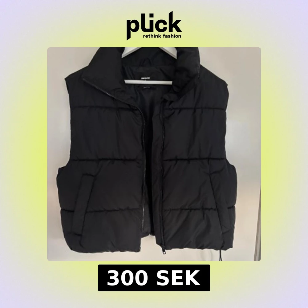 Säljer en svart, quiltad dunväst från Bik Bok i storlek S. Använd en enstaka gång och är i nyskick!