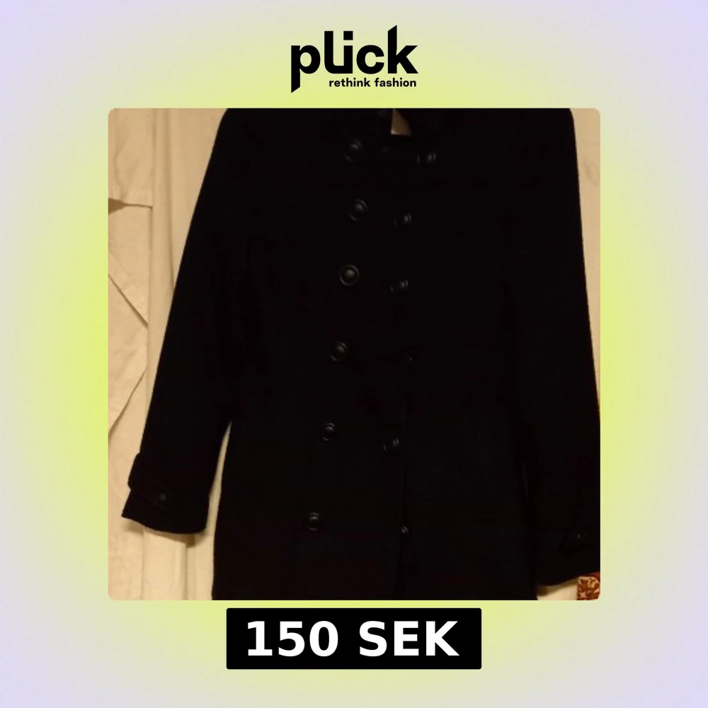 Snygg svart fodrad finkappa från Bik Bok i storlek XS. Den har en klassisk dubbelknäppt design med långa ärmar och är tillverkad i en blandning av polyester, viskos och ull. Perfekt för kyligare dagar.