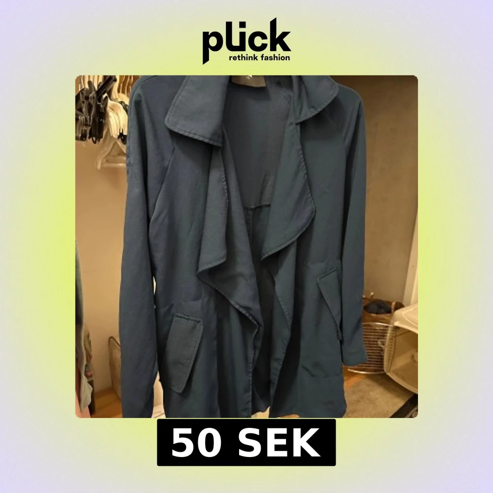 Snygg mörkblå kofta från BikBok två fickor framtill. Koftan har lång ärm och är tillverkad i ett mjukt, tunt tyg som ger ett avslappnat intryck. Perfekt för dig som gillar stilrena och enkla plagg.