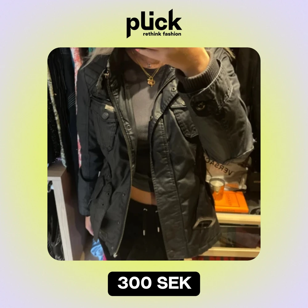 Sjukt cool jacka med skärp i midjan. Mörkblå, nästan svart. Passar mig som har storlek 36-38🏍️