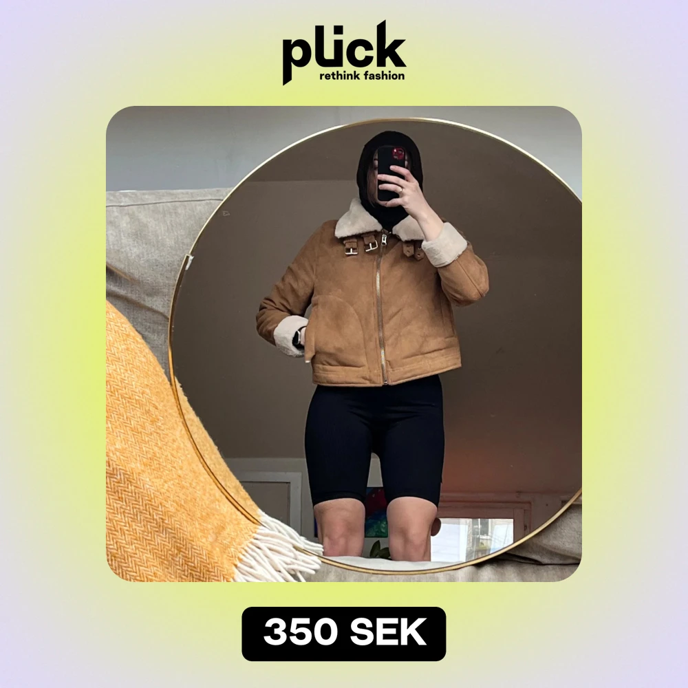 Säljer en snygg brun croppad mockajacka från H&M med mjukt pälsfoder. Jackan har en dragkedja och spännen vid kragen för extra stil. Perfekt för kyliga dagar med sin varma och bekväma design.