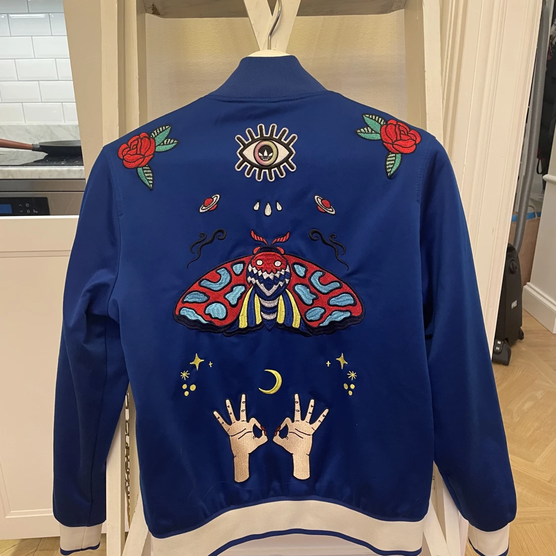 Unik limited edition Adidas Original Bomberjacka. Använt sparsamt. Finns ej längre att köpa. Unisex, storlek UK 8. Nypris 3459 kr.