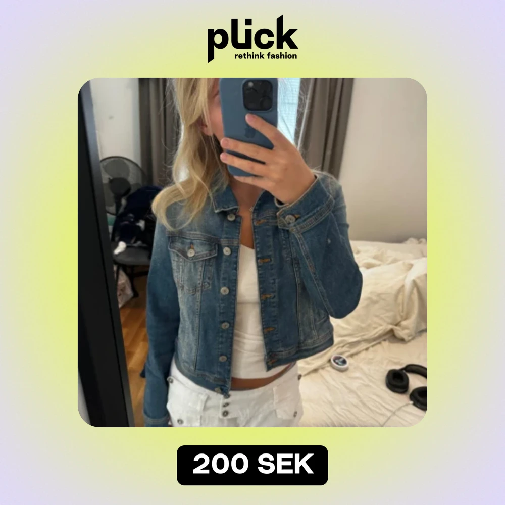 Säljer en snygg blå jeansjacka med knappar framtill. Jackan har en klassisk jeanslook med två bröstfickor och långa ärmar. Perfekt för en casual stil och passar bra till både vår och sommar.