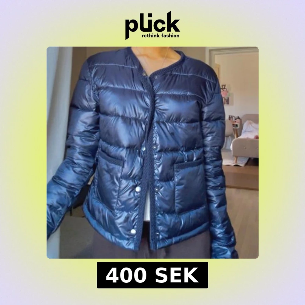 Säljer en snygg blå dunjacka med knappar framtill. Jackan har en quiltad design och långa ärmar. Storlek 170 men passar XS- S. Den är även slutsåld