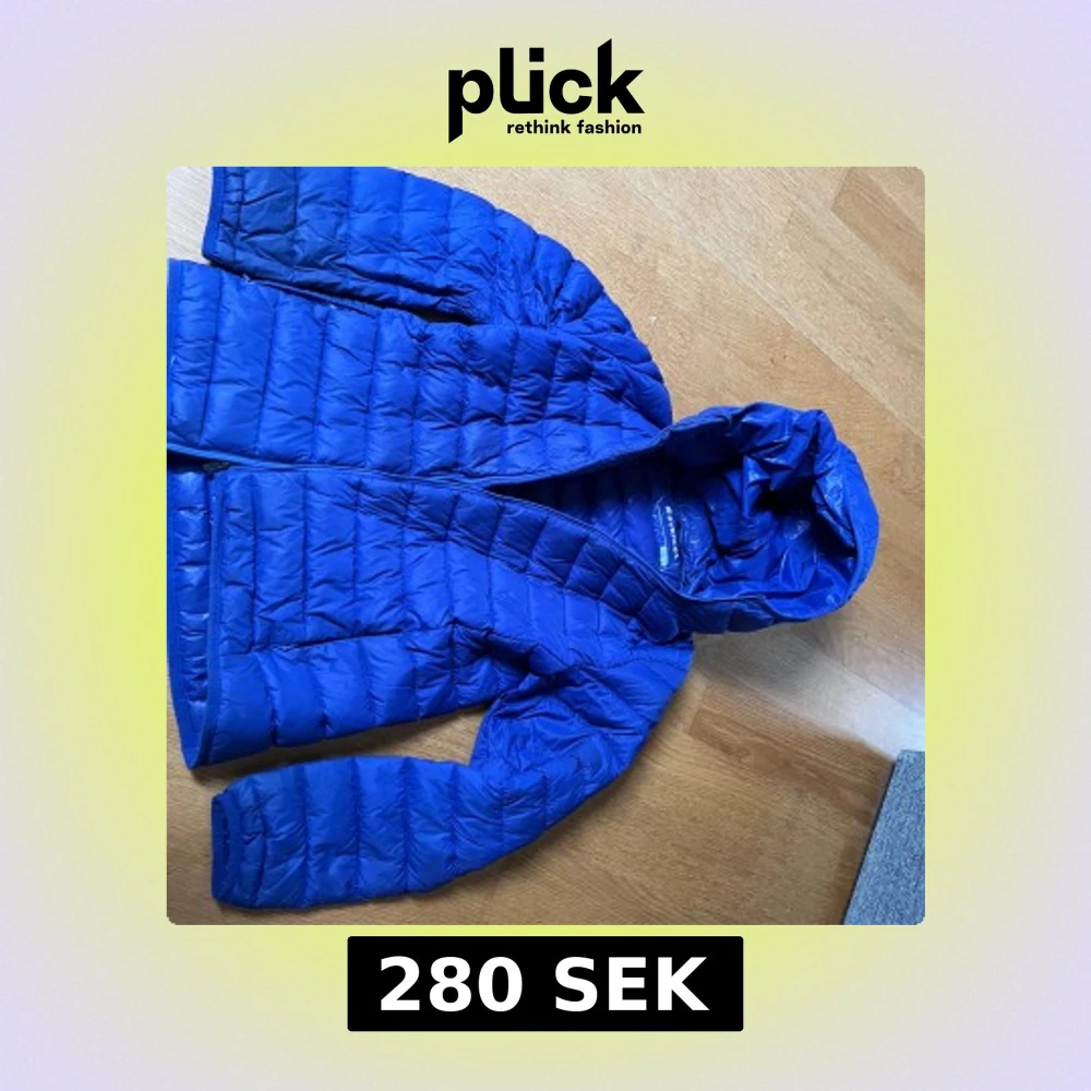 Säljer en blå tunnare dunjacka från Everest med dragkedja och huva. Jackan är quiltad och har långa ärmar, perfekt för kyligare dagar. Den är lätt och smidig att bära med sig.