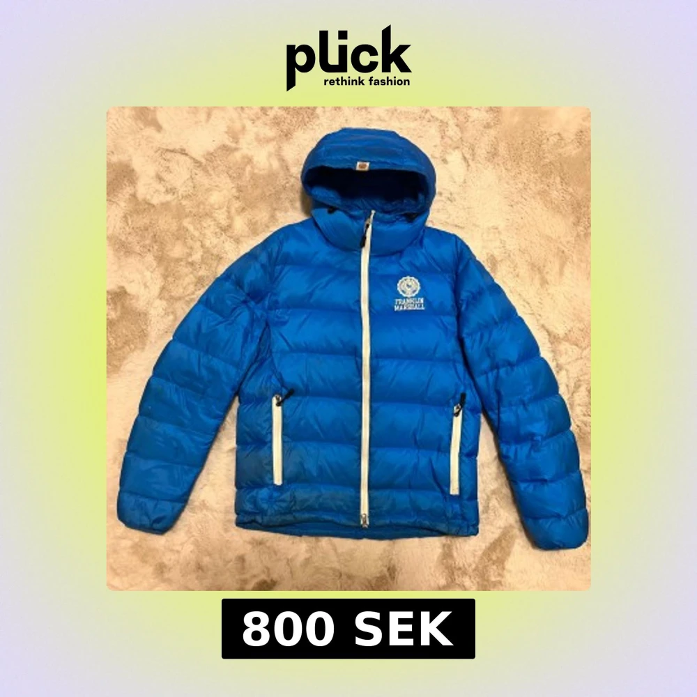 Säljer en snygg blå dunjacka från Franklin Marshall med huva och dragkedja. Jackan har vita detaljer och två praktiska fickor med dragkedja framtill. Perfekt för kyliga dagar!