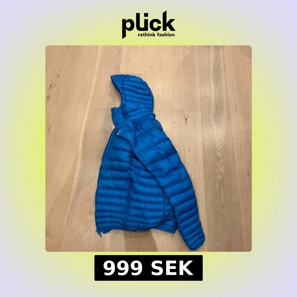 Säljer en snygg blå dunjacka från Haglöfs. Jackan har en quiltad design och är utrustad med en praktisk huva. Perfekt för kyligare dagar och håller dig varm och bekväm. Passar bra för både vardag och utomhusaktiviteter. Ända defekten är lagningen på ena armen.