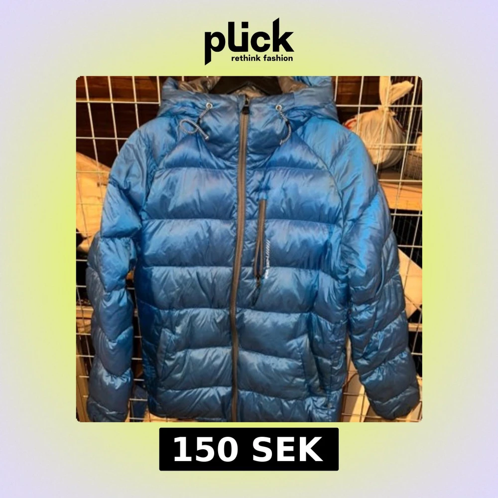 Säljer en blå dunjacka från McKinley med huva och dragkedja. Jackan är perfekt för kyliga dagar och har en stilren design med quiltade paneler. Den är långärmad och har justerbara snören vid huvan för extra skydd mot väder och vind.