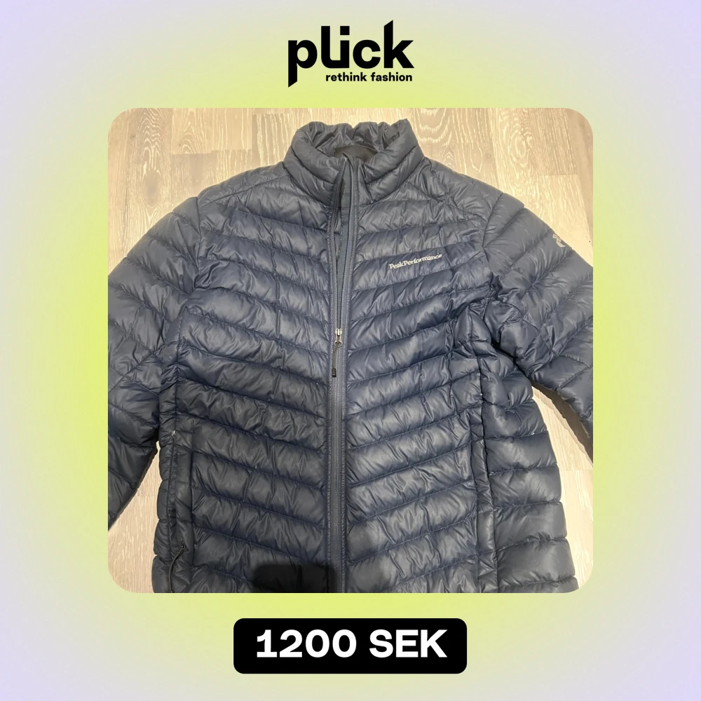 Säljer en snygg blå dunjacka från Peak Performance. Den är perfekt för kyliga dagar med sin quiltade design och dragkedja framtill. Jackan har en hög krage för extra värme och är i väldigt bra skick. Passar perfekt för höst och vinter! Köpte den för nått år sedan för runt 3000kr och den är sparsamt använd. (Storleken är L men passar även perfekt för M. Och pris kan diskuteras lite… Skriv för mer info