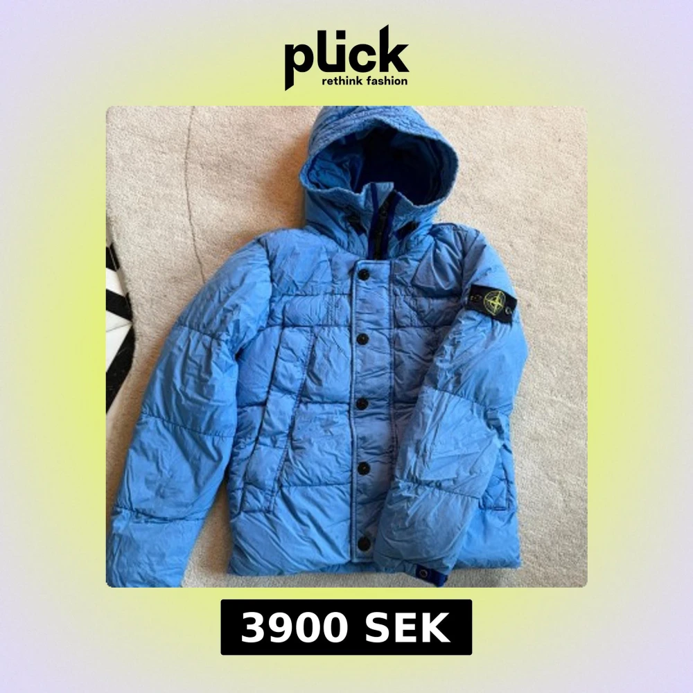 Säljer en blå dunjacka från Stone Island med huva, quiltad design och ikonisk patch på ärmen. Jackan har både dragkedja och knappar framtill, samt praktiska fickor. Perfekt för dig som gillar streetwear och vill ha en snygg jacka med coola detaljer.