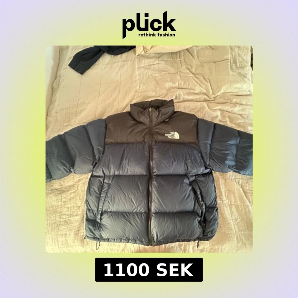 Säljer en blå och svart dunjacka från The North Face med hög krage och dragkedja framtill. Jackan har två sidofickor med dragkedja, justerbar nederkant och logga på bröstet och ryggen. Perfekt för kalla dagar och riktigt snygg streetstil.