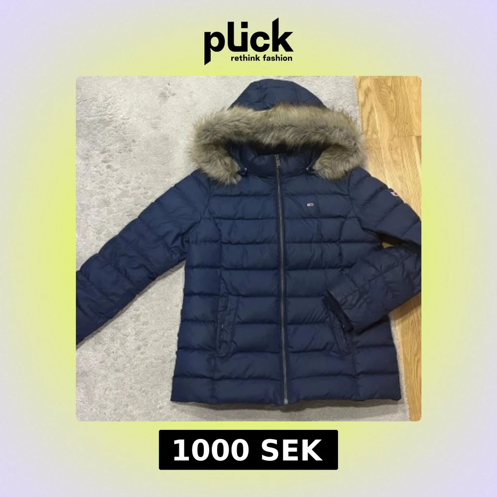 Snygg blå dunjacka från Tommy Jeans med pälskantad huva och dragkedja. Perfekt för kalla dagar med sin quiltade design och långa ärmar. Jackan har märkets logga på bröstet och ärmen.