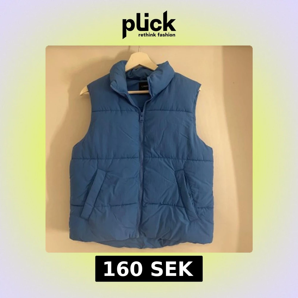 Säljer en snygg blå dunväst från Lindex med dragkedja framtill. Västen har en hög krage och två praktiska fickor. Perfekt för kyliga dagar!