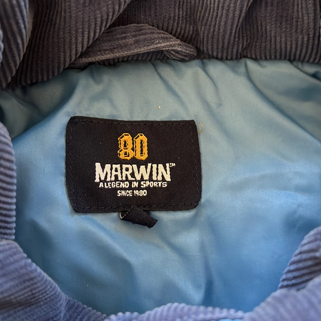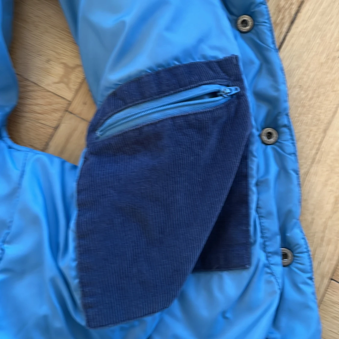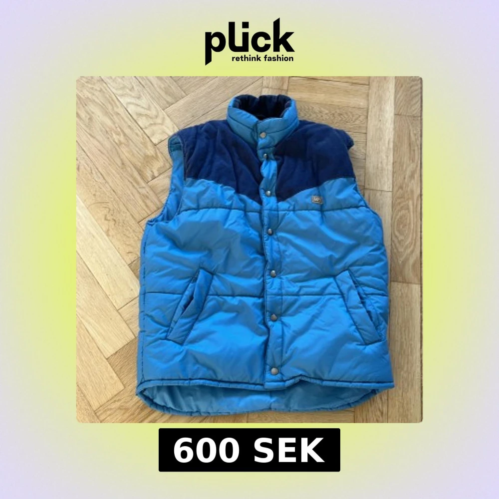 Säljer en blå dunväst från Marwin med mörkare axelparti och krage. Västen har knappar framtill och två fickor. Perfekt för kyligare dagar. Pris kan diskuteras