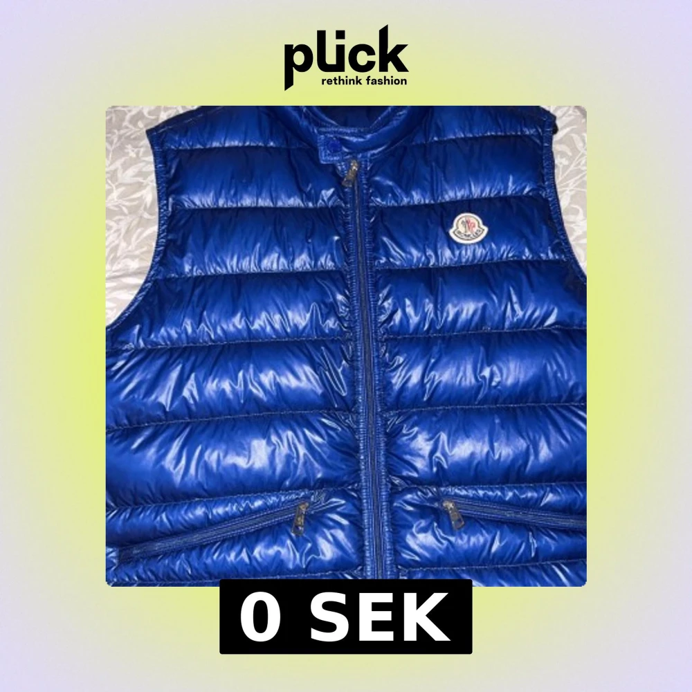 Snygg blå dunväst från Moncler med glansig finish och klassisk logga på bröstet. Västen har två dragkedjefickor framtill och hög krage. Perfekt för lager-på-lager och ger en sportig vibe till din outfit. Bud