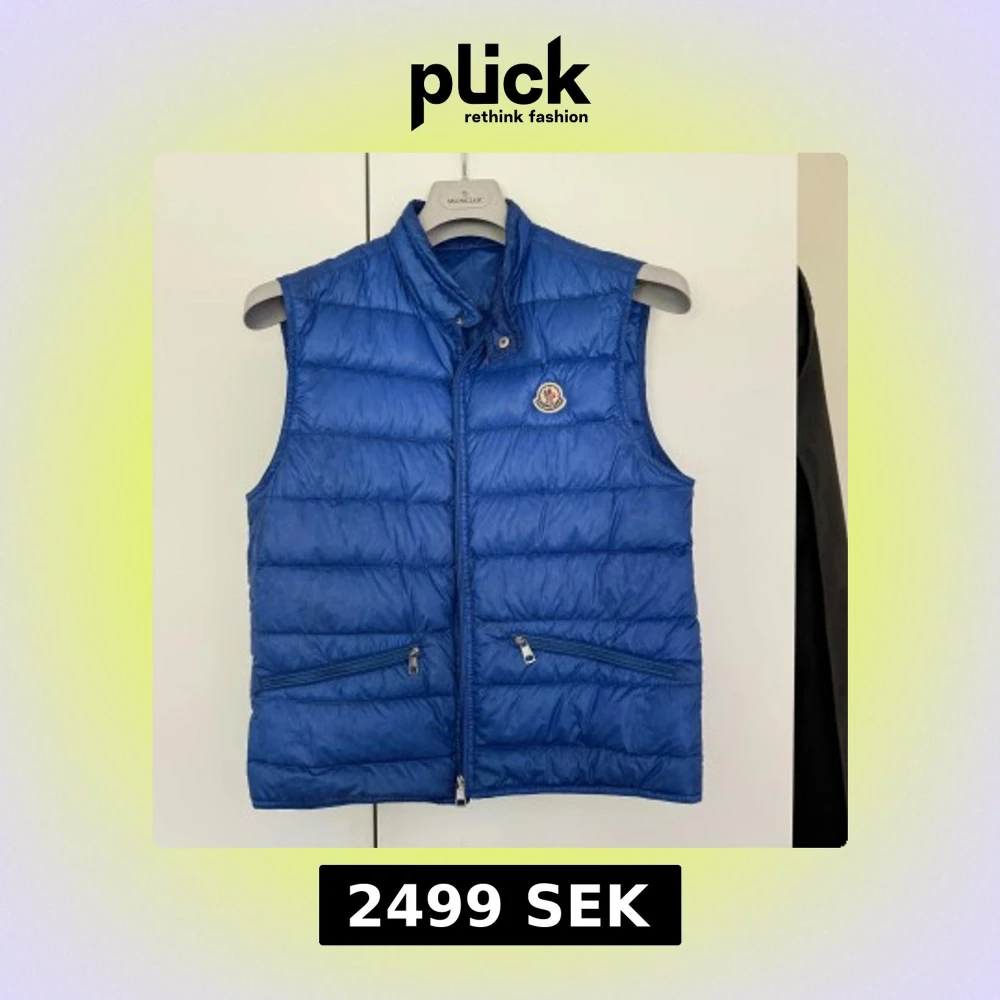 Snygg blå dunväst från Moncler. Västen har två snedställda fickor med dragkedja och Moncler-logga på bröstet. Storlek 2. Fint skick inga skador. Pris kan diskuteras.